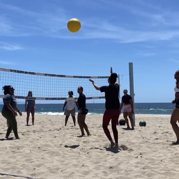 Quieter sand volleyball courts on El Segundo Beach offering a less crowded alternative to neighboring Manhattan Beach courts.