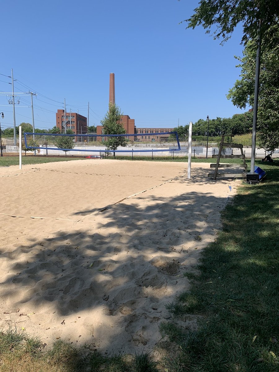 Public sand volleyball court in a 2.5-acre downtown park. Free and open to the public.