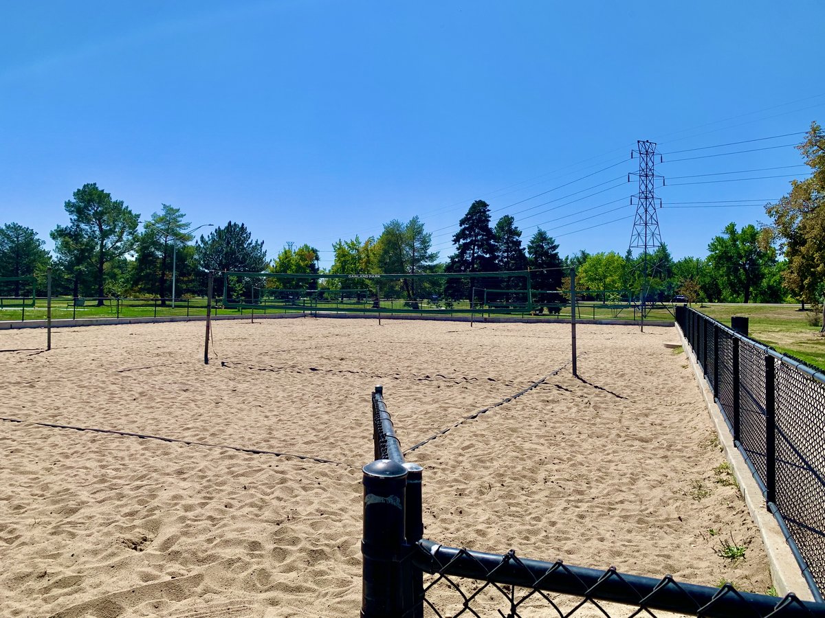 Public park with four sand volleyball courts popular for pick-up games and league play in southeast Denver.