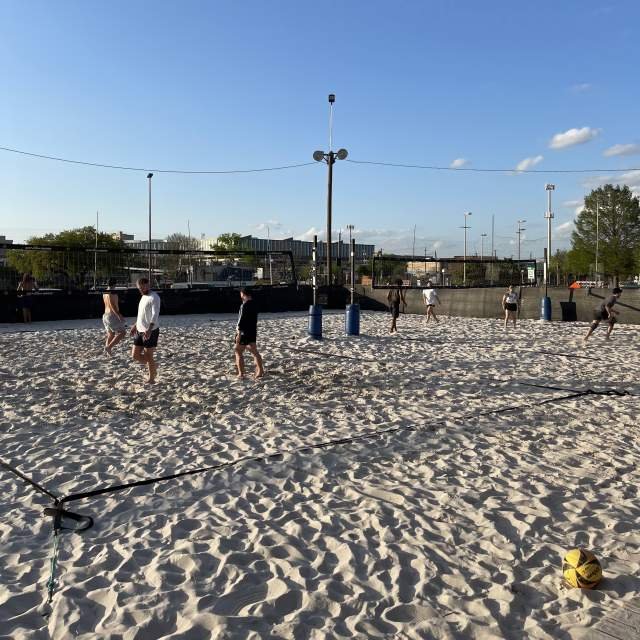 Free public sand volleyball courts in a large 263-acre Dallas metro park.