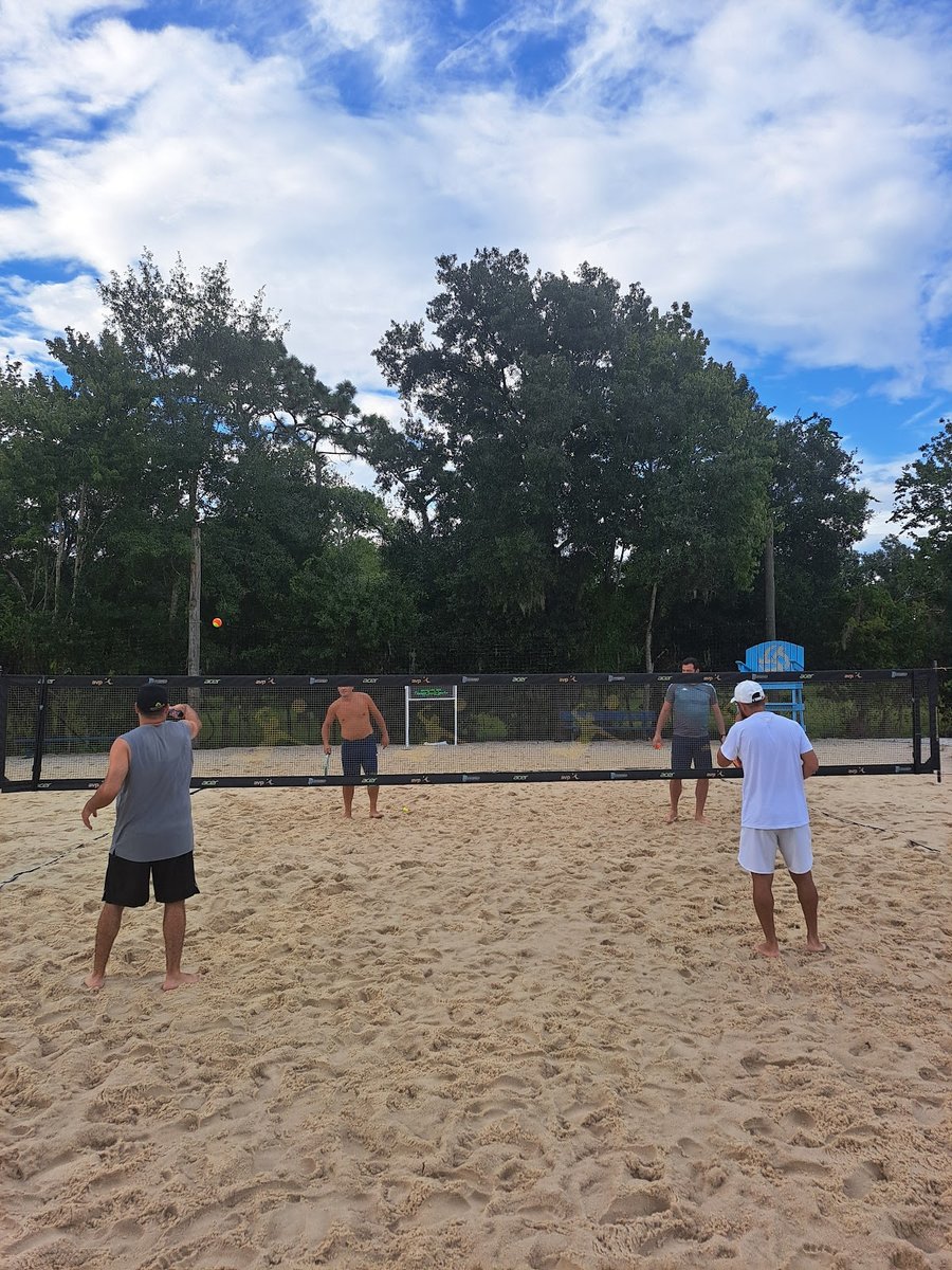 Private beach volleyball training facility in East Orlando with four lighted sand courts.